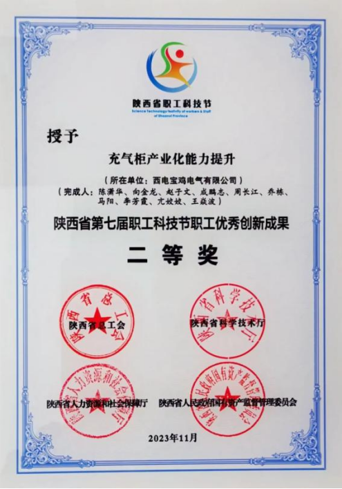 陕西省职工优秀创新成果二等奖——尊龙凯时宝鸡电气 “充气柜产业能力提升”