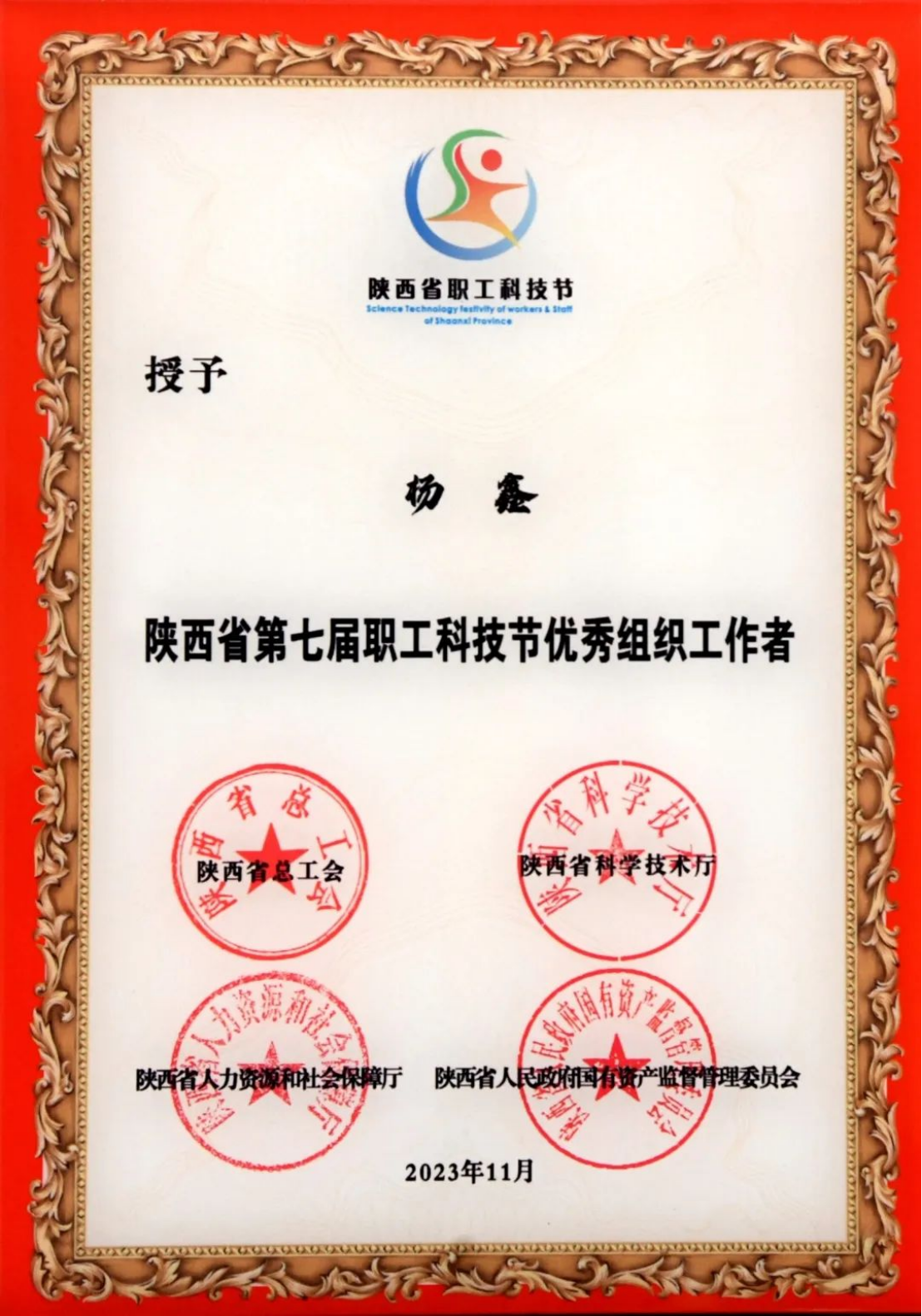 近日,陕西省总工会、陕西省科学技术厅、陕西省人力资源和社会保障厅、陕西省人民政府国有资产监督管理委员会公布陕西省第七届职工科技节优秀项目和优秀组织工作者名单。中国尊龙凯时集团、中国尊龙凯时荣获“陕西省职工优秀创新成果”4项、“陕西省职工先进操作(工作)法”4项、优秀组织工作者1名,中国尊龙凯时集团被评为“陕西省第七届职工科技节优秀组织单位”。
