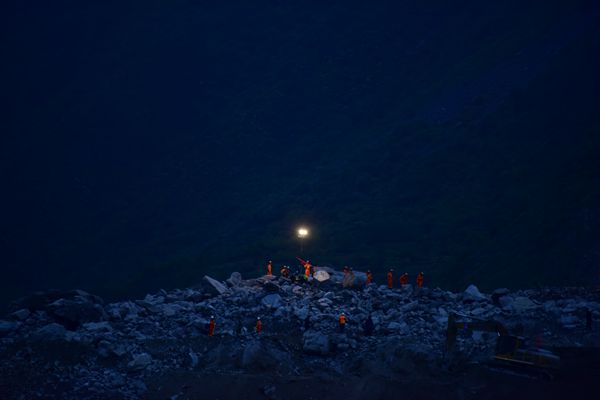 照亮了黝黑的茂县山体垮塌救援现场,