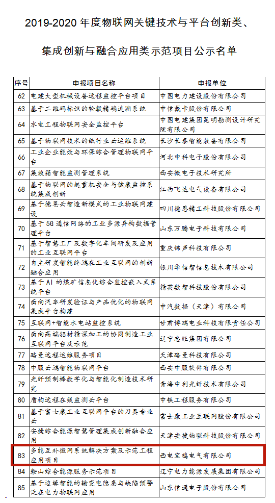 近日,集团多能互补微网系统解决方案及示范工程应用项目正式被国家工信部列入2019-2020年物联网关键技术与平台创新类、集成创新与融合应用类示范项目名单。