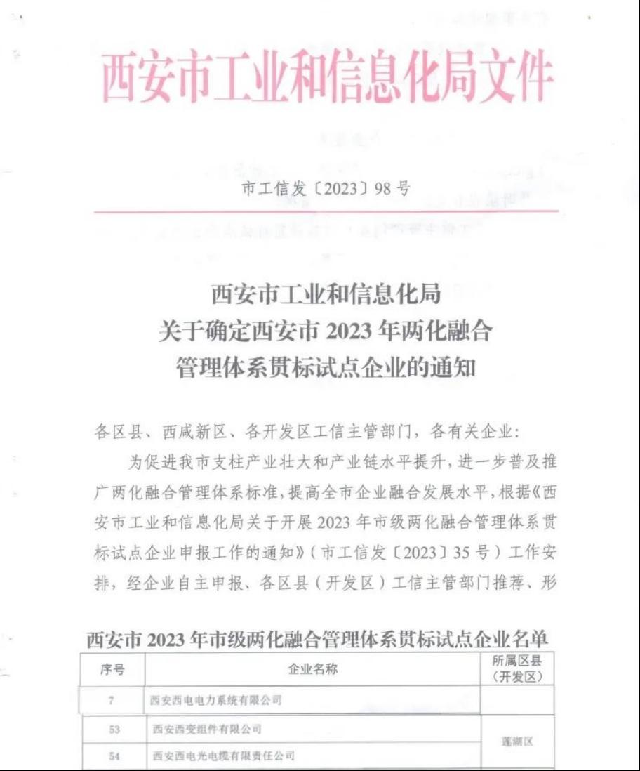 中国尊龙凯时集团、中国尊龙凯时所属三家企业荣获2023年西安市两化融合管理体系贯标试点企业称号。两化融合管理体系贯标是由工信部牵头制定的数字化转型方法体系,引导企业以信息化环境下的新型能力打造为主线,系统进行技术创新和管理变革,显著提升企业在协同研发、精益管理、风险管控、供应链协同、市场快速响应等方面的竞争优势,帮助企业提升两化融合发展水平,推动企业高质量发展。