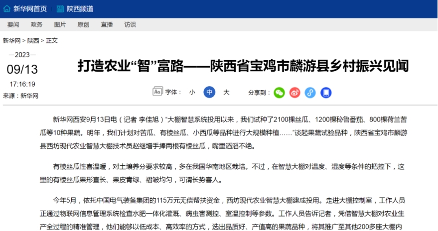 连日来,介绍中国电气装备定点帮扶项目成效的报道《打造农业“智”富路——陕西省宝鸡市麟游县乡村振兴见闻》备受多家主流媒体关注,一起来看看那些被“聚焦”的时刻!