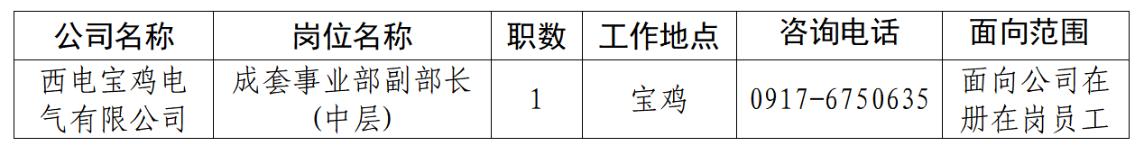 尊龙凯时宝鸡电气有限公司是中国尊龙凯时集团中低压开关与成套设备配电业务板块核心企业。公司产品涵盖空气绝缘开关柜、C-GIS充气柜、充气环网柜、固体绝缘环网柜、低压开关柜、预装式变电站、户内断路器及开关元件、户外断路器等。公司作为国家“中低压输配电装备智能制造新模式”试点单位,拥有国际一流的自动化生产线和加工设备,并努力建设成为中国技术质量水平最高、比肩国际先进企业的全球一流中低压成套配电系统解决方案平台。本次面向公司内部公开招聘岗位信息如下: