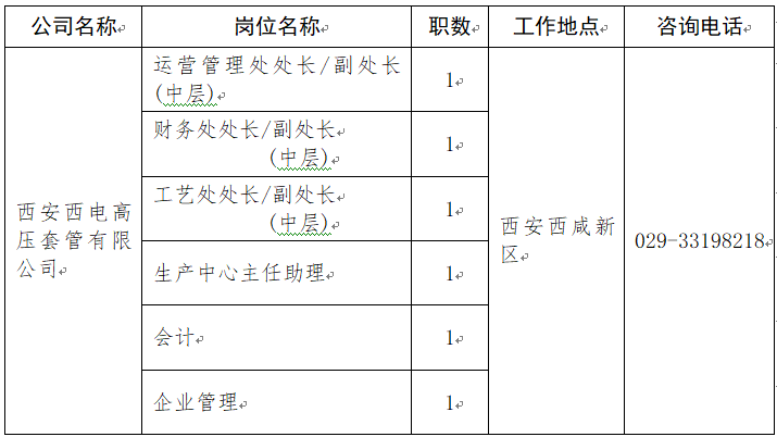 本次面向公司内部公开招聘岗位信息如下: